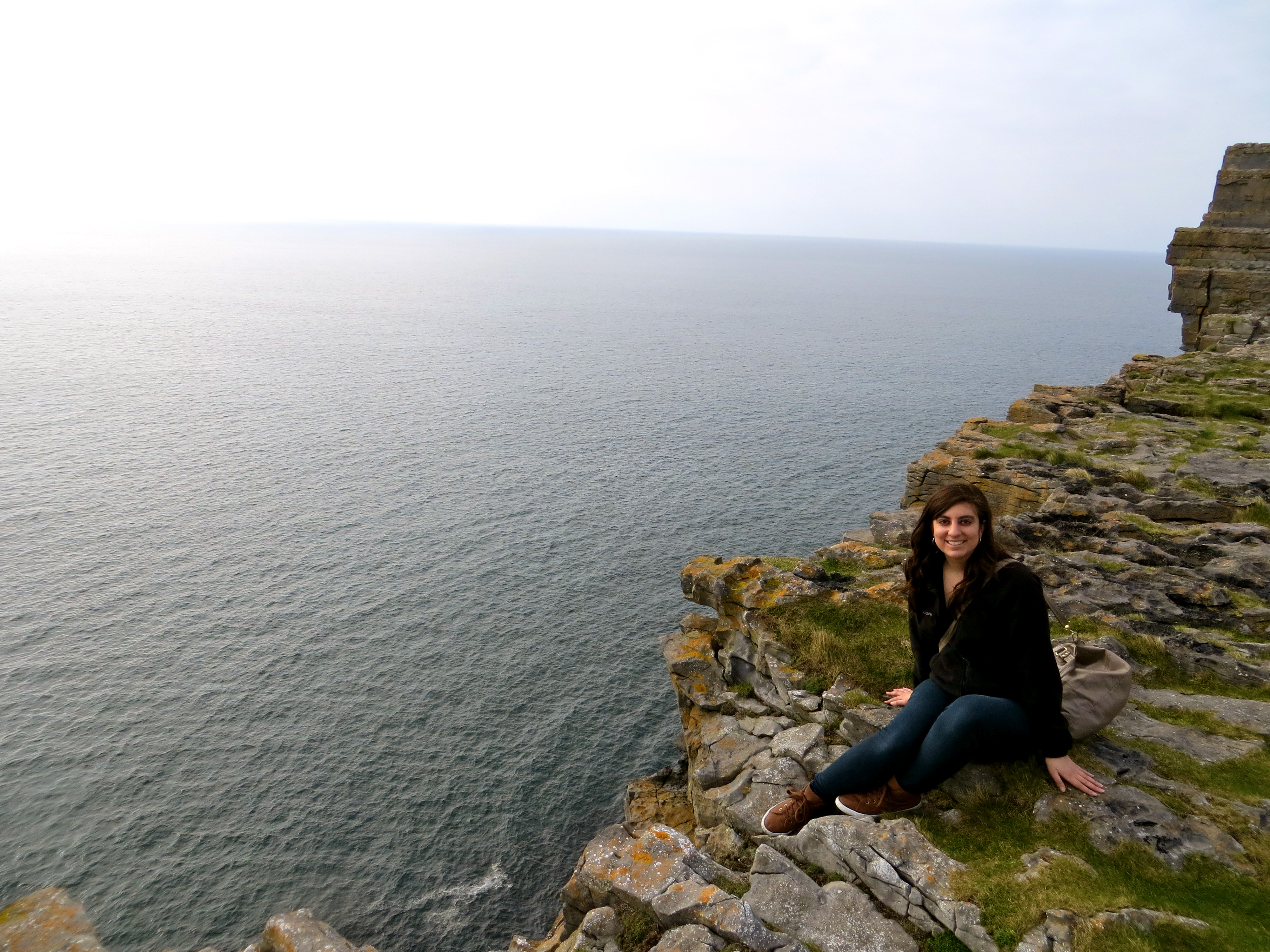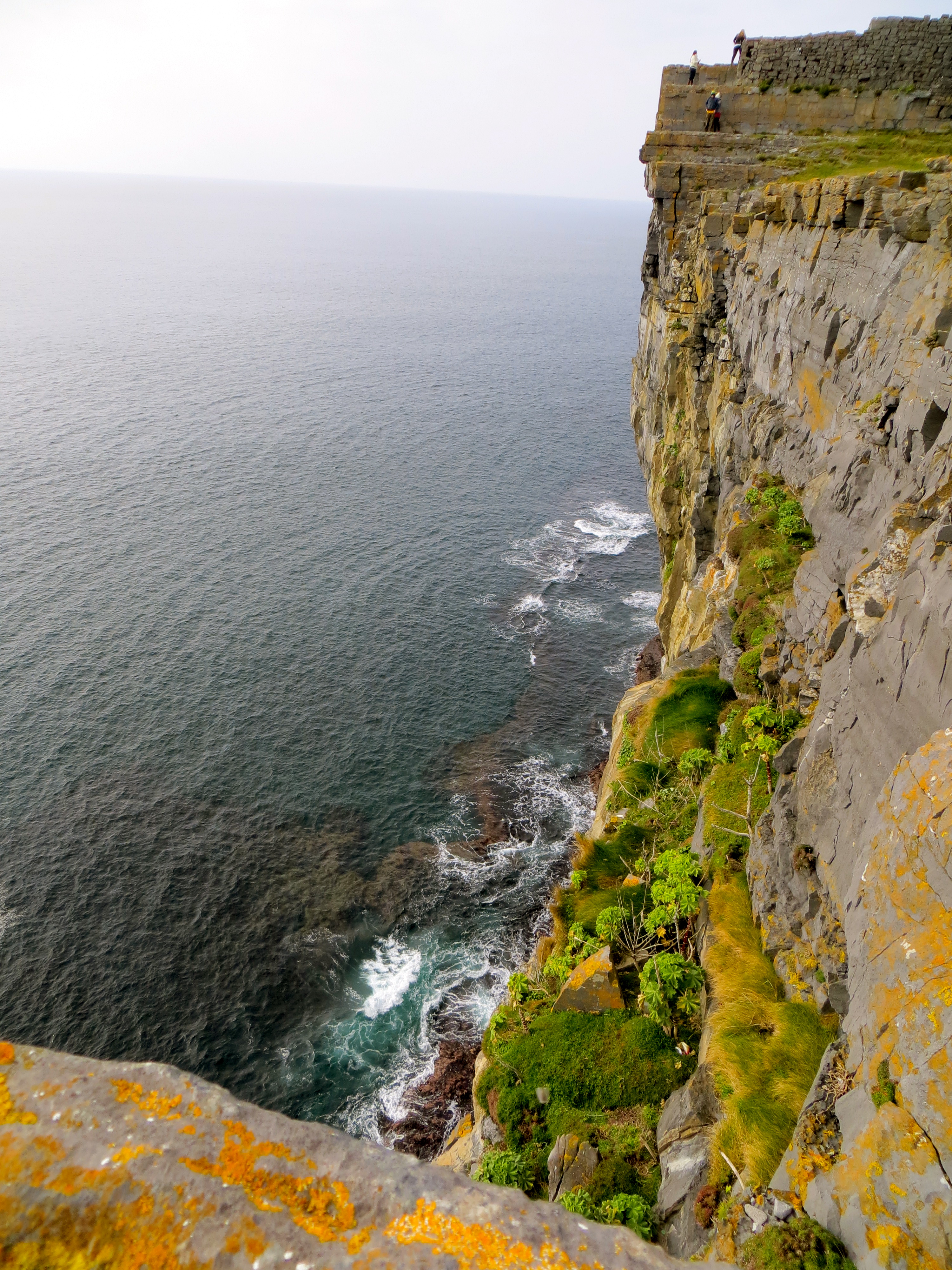 We piled in his van and began our tour. He gave us a lift to the “best” restaurant on the island, which even had a thatch roof. He dropped us off for lunch and explained how to walk to the main site-seeing location (only accessible by foot) and agreed to pick us up a couple hours later to continue our tour. We started the walk/climb to Dún Aengus, the most famous prehistoric fort on the islands. Between the walk and the sun we warmed up enough to the point where we didn’t have to wear jackets. So that was fun! After about a 20 minute walk, we reached the top. And while the fort was amazing, the cliffs that the fort sits on are literally indescribable. I cannot begin to accurately explain how breath-taking, expansive, and terrifying they are. There are no safety features, no rules (besides your own), and you can be as much of a daredevil as you wish. I can’t tell you the number of times I turned my head and my heart stopped beating. One of the other 9 girls were always ridiculously close to the edge. Legs hanging over the cliff. I felt like a mother. The only way I could manage to reach the edge was while lying down. Where I knew there was no possible way I could trip or have a gale wind throw me over the edge. But it was definitely amazing. Those cliffs are honestly the one place/experience-out of everything so far-that I wish everyone could have the chance to experience. Just to feel the energy and beauty. Incredible.
