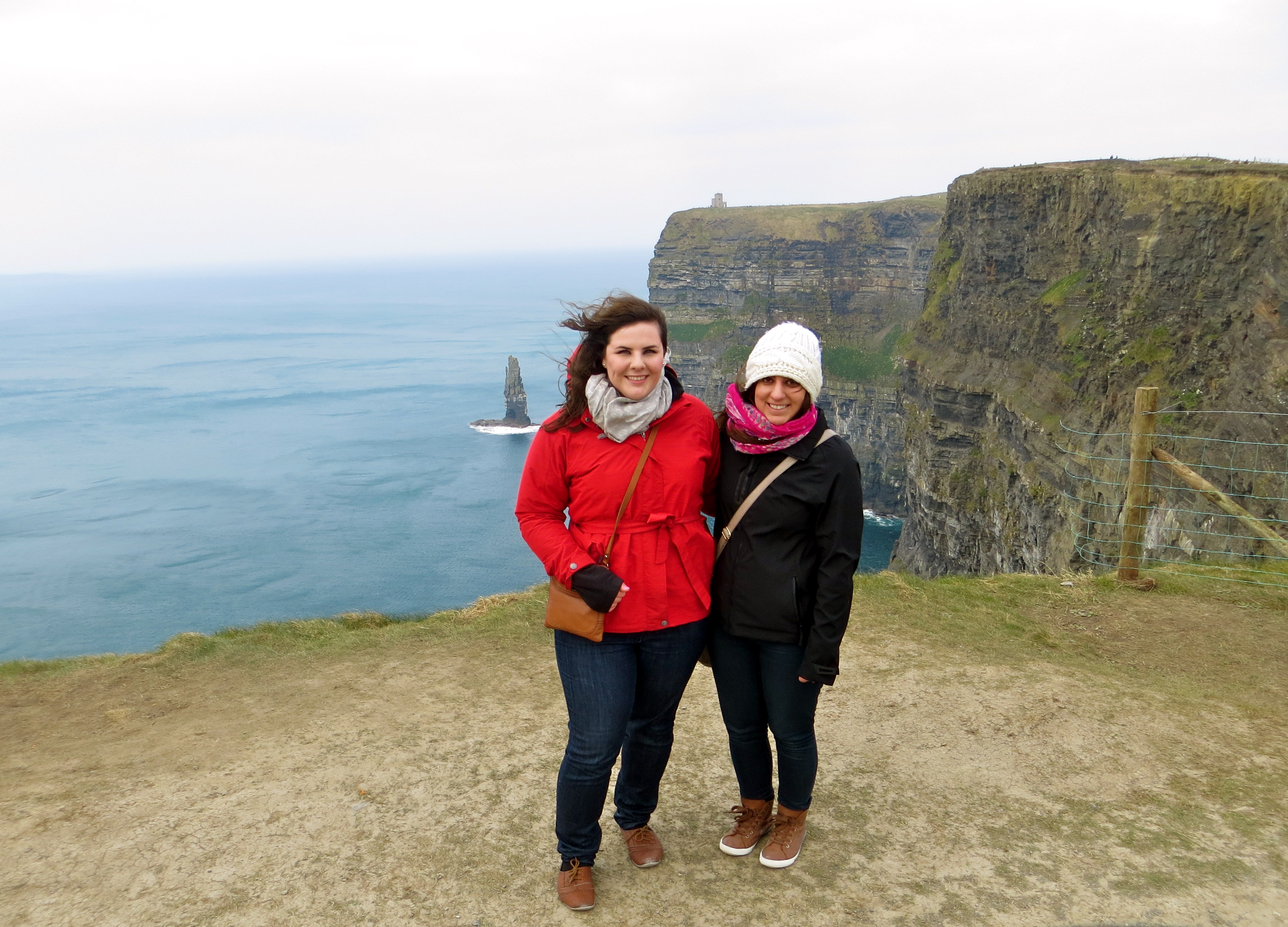 Monday was one of my favorite days. We went on a tour to the Cliffs of Moher. Our tour guide tried getting us to sing the song “Galway Girl,” an extremely catchy tune that followed me around the whole week, on the way down to the cliffs. Laura said the first time she went on this trip everyone sang along—our group didn’t sing a peep. Our tour guide threatened to close his eyes if we didn’t sing. Not only was he driving, but the roads are so tiny that we basically have to pull over when another car wants to pass. After that “threat” there were a few murmurs of mumbled singing—a great improvement.  We stopped a few places along the way, including some “baby cliffs” which were terrifyingly high. The scenery along the way is so gorgeous—filled with rolling hills, sheep, cattle, an abundance of castles and beautiful cloud-filled skies—all the cliché things that you picture when you think of Ireland.  We made it to the cliffs after lunch and they were breathtaking. I know what Laura means when she says that pictures don’t do any of the scenery justice. I would look at something in awe, take a picture and get disappointed at what I saw on my camera. It’s a real shame that the amount of beauty can’t be seen in a photograph. It was so windy that day, and Laura and I made our way to the part where there isn’t anything in between you and the 700 foot drop to the ocean—needless to say, I was terrified.
