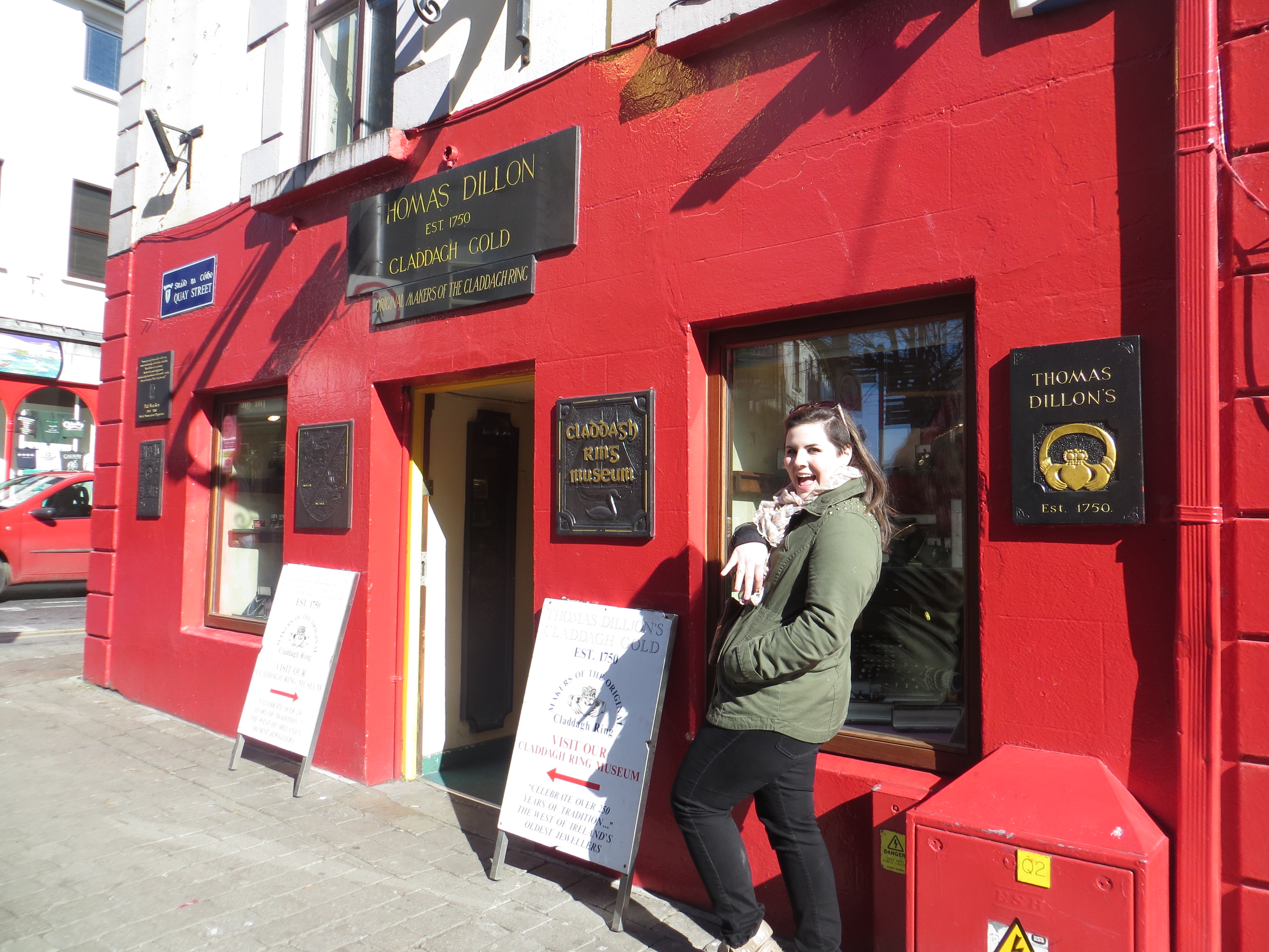 Wednesday we traveled to Galway on the west side of Ireland. Laura made me curse myself with bad luck because I bought myself a claddagh ring—something you are apparently not supposed to buy yourself. I bought it from the original maker of the ring that has been there since 1750. We also saw a floating man, who we decided was just using a magnet to hover. We finished the day by going to a pub and listening to some more chill live music. I say chill because they sit amongst everyone, not on a stage, but in a booth, and they all play together. This group had an accordion which was fun.