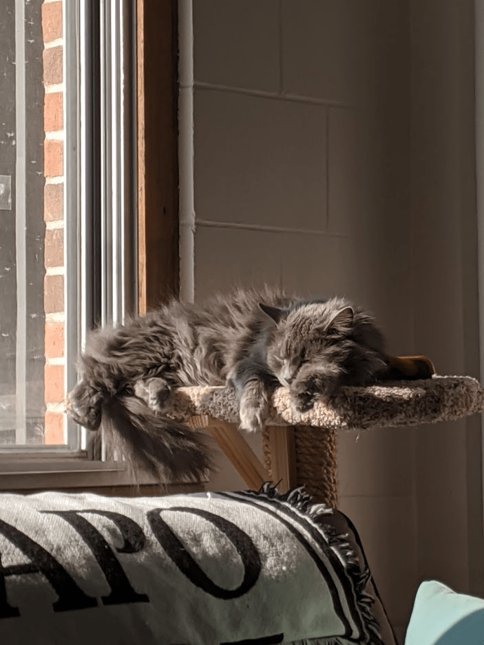 I’m grateful I have space to roam outside. I have income. Steve has a steady paycheck. I have a cat who doubles as an emotional support animal. I have WiFi to sustain my business. I have reception that supports clear phone calls.