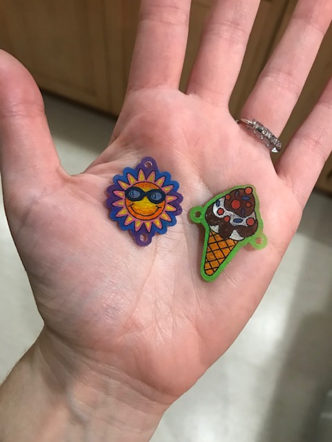 That night, I video chat with the college girls, Steve and Klare wrap up a late shift on campus, they sing happy birthday to me, and I open gifts, including Shrinky Dinks. I make two: a sun and an ice cream cone.