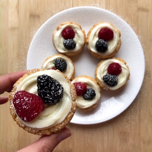 In the afternoon, I participate in a Weekend Bake-off Competition organized by a friend in Eau Claire. The category is ‘a tart.’ The tart must include at least two of the following: fruit, chocolate, honey, or cinnamon. I make mini sugar cookie tarts frosted with a combination of cream cheese/honey goat cheese/sugar, and top them with berries.